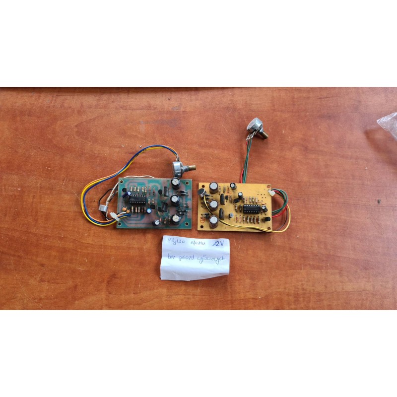 Załączony mikrofon przez układ płytki steruje silnikiem 12V w rytm muzyki